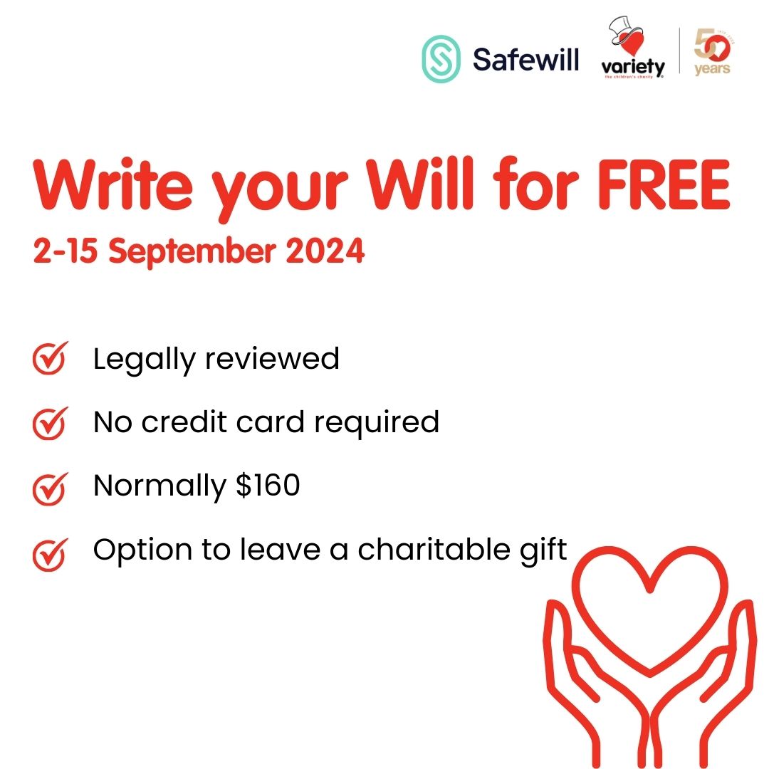 From 2-15 September, Variety WA is offering a special free legal Will writing service in partnership with Safewills.